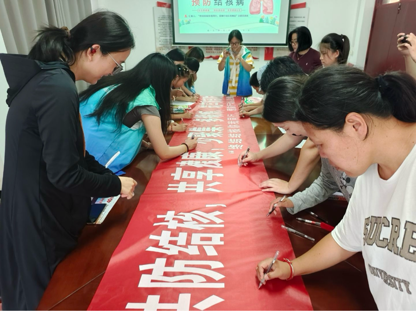 活动最后,实践团拉起横幅,邀请社区居民和小朋友们签名。大家纷纷提笔留下名字,以签名承诺践行健康责任,用行动传递“防治结核,人人有责”的理念。