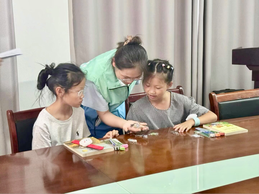 图为实践团成员给予表现好的小朋友奖励。通讯员 邓雨 供图