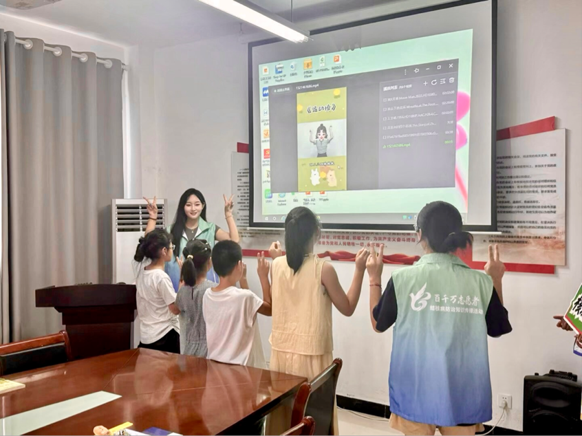 图为实践团通过PPT为小朋友讲解防治内容。通讯员 吴欣悦 供图