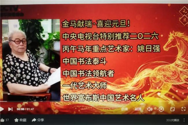 2025年12月,中央电视台特别推出《二零二六丙午马年重点艺术家姚日强》贺岁片,向全国人民新年问候和良好祝愿。