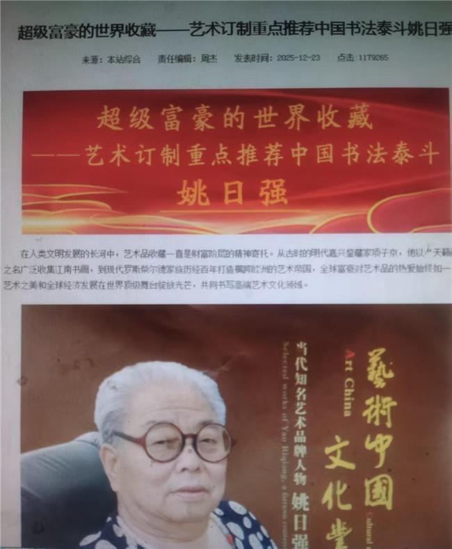 2025年12月22日全球超级富豪艺术定制中心网刊登《全球超级富豪世界收藏——艺术定制重点推荐书画家姚日强》点击量:1179227次。